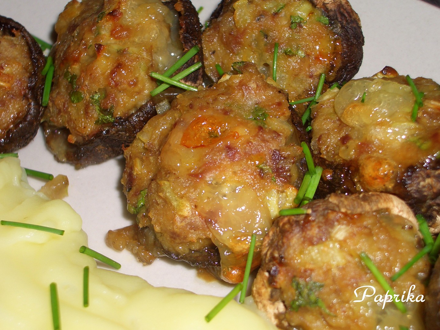 Papriko:-), dělala jsem podle tebe tyhle bedly a jsou moc:-p. Jen, i když jsem moc chtěla použít syrečky, byla jsem "nucena";-) nahradit je eidamem a uz. sýrem. Vím, že originál by byl trošku jiný, ale my jsme si pochutnali i tak:-p. Posílám boďku a fotku (jen mě napadlo je vyfotit až druhý den, tak mám houby tmavé:-(). Kdyby jsi jí nechtěla tak písni a já jí smažu. Recept doporučuji dále;-).