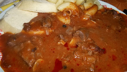 Krok 4: Přiklopíme a dusíme do změknutí (cca 1 hodinu). Zahustíme moukou rozmíchanou s vodou. Podáváme s knedlíkem.