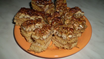 Pracný, ale vynikající recept na ořechový zákusek, kde se propojují chuti karamelu, ořechů a rumu. Manipulace s křehkými pláty těsta vyžaduje trochu šikovnosti, ale pokud se zlomí, nevadí, krémem se slepí.