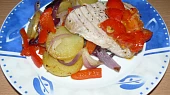 Steak z tuňáka s rajčaty a paprikovými bramborami