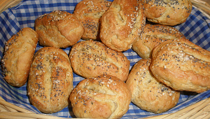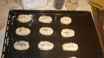 Krok 3: Na pomoučeném vále rukama propracujeme tužší nelepivé těsto a děláme malé bochánky – kulaté nebo podlouhlé. Nožem do nich uděláme křížek nebo půlící čárku, potřeme mlékem a ozdobíme mákem, kmínem, hrubou solí apod.
