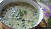 Špenát je jedním z nejpoužívanějších druhů listové zeleniny. K dostání je celoročně, ať už mražený nebo jeho čerstvě natrhané listy. Nemá příliš výraznou chuť a proto ho v této polévce dochutíme česnekem, solí a pepřem.