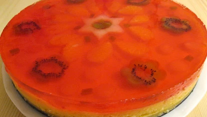 Krok 4: Korpus necháme vychladnout, poté odkrojíme pruh 10 cm, aby vznikl čtverec o straně 25 cm, prokrojíme a pokapeme trochou šťávy z kompotu smíchané s trochou rumu. Natřeme vrstvou krému, poklademe jahodami, opět potřeme krémem, přiklopíme vrchním plátem a vše potřeme zbytkem krému, aby se srovnaly případné nerovnosti.