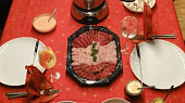 majonézu smícháme s celým nakládaným pepřem. Krok 7: Bylinková omáčka: majonézu smícháme se sušenýma (nebo pokud máme i čerstvě) bylinkama, kapka citronu, špetka pepře. Krok 8: Majonézu můžeme nahradit plnotučným tvarohem a Creme fraiche. Další omáčky dle fantazie a chutě :-). Krok 9: Maso se napichuje na dlouhé vidličky speciálně určené na masové fondue. Pozor, nejsou to stejně vidličky jako na syrové fondue. Masové mají ještě na vnitřní straně zoubek, aby maso nesjelo do kotlíku. Krok 10: Maso se nechá podle velikosti asi tak 3-5 minut povařit v kotlíku, na talíř si každý nachystá rýži, zeleninu, omáčky a potom se pomalu baští a povídá.. maso se na vidličce dá proložit žampionama, je to potom takové šťavnatější. A nebo se dají taky žampiony naházet do bujónu a pak jednotlivé vylovit.