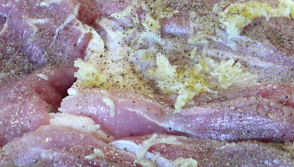 Krok 1: Koleno vykostíme a plát si nožem upravíme do šířky, osolíme, potřeme trochou utřeného česneku.