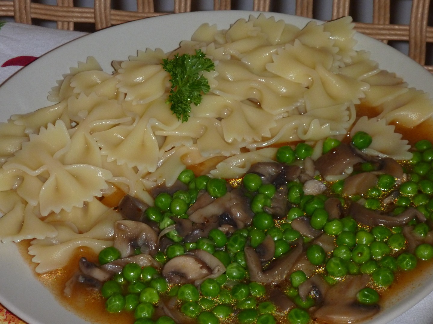 Krok 2: Do základu dáme pokrájané huby, osolíme, okoreníme, varíme cca 15 minut, potom zahustíme zátrepkou (záklechtkou) zo studenej vody a múky, prevárame, dochutíme, pred koncom vhodíme na pár minút hrášok.