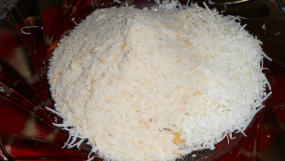 Krok 1: Kotletu si rozklepeme na slabo a osolíme z obou stran. Máslo si rozpustíme a plátky masa v něm protáhneme. Do jedné misky si nastrouháme tvrdý sýr a spojíme se stejným množstvím strouhanky. V této směsi obalíme řízky.