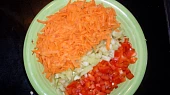 (jediné co jsem měla jinak je, že jsem použila vepřové maso místo kuřecího, protože jsem ho měla již koupené a potřebovala jsem ho upotřebit a dále místo klasického bílého zelí, zelí čínské (pekingské) - manžela jsem totiž poslala pro suroviny na nákup a toto zelí si vydedukoval z toho, že dělám přeci "čínu"