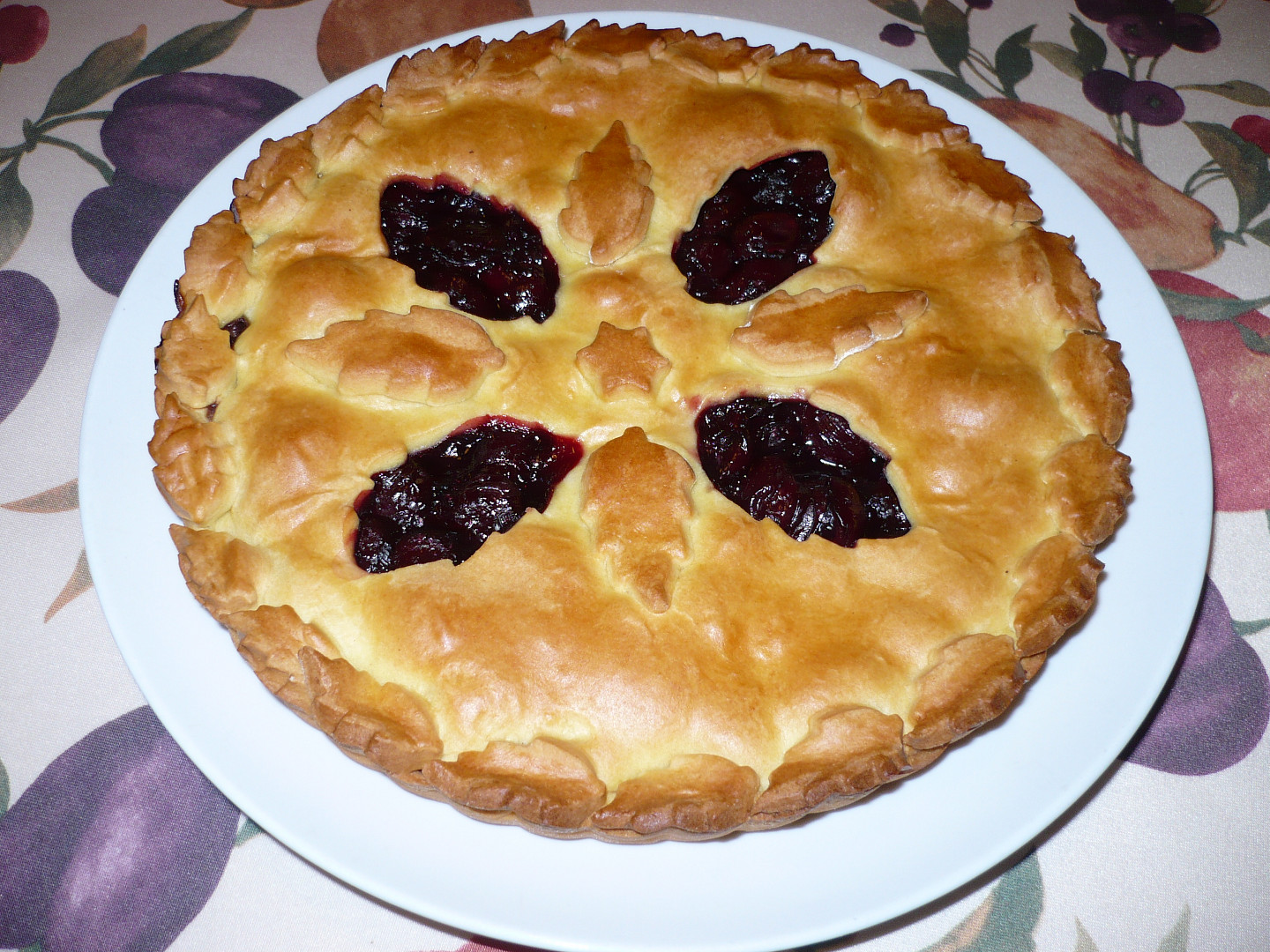 Krok 10: Ovoce přikryjeme dalším dílem těsta, uděláme otvory, nebo zářezy, aby mohla unikat pára, potřeme mlékem nebo žloutkem a vložíme do trouby.
