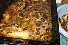 Domů - Recepty - Treska / pangasius / na hříbkách a na olivovém oleji