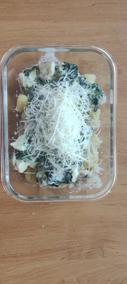 Gnocchi s kuřecím masem, špenátem a sýrovo-smetanovou omáčkou