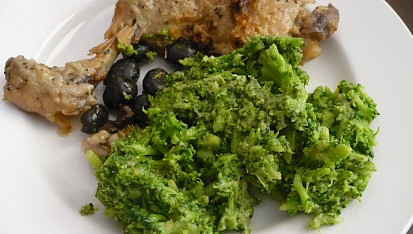 Krok 3: Nakonec jsem dala celý hrnec ještě na chvíli zapéct do trouby. Na přílohu si v páře uvaříme růžičky brokolice (ale ne moc, ať se nám brokolice nerozvaří, měla by být mírně křupavá).