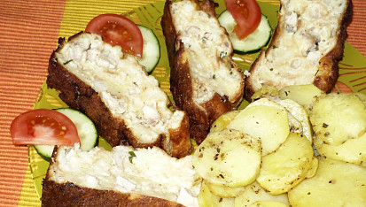 Starý chleba v hořčicovém kabátku se slaninou
