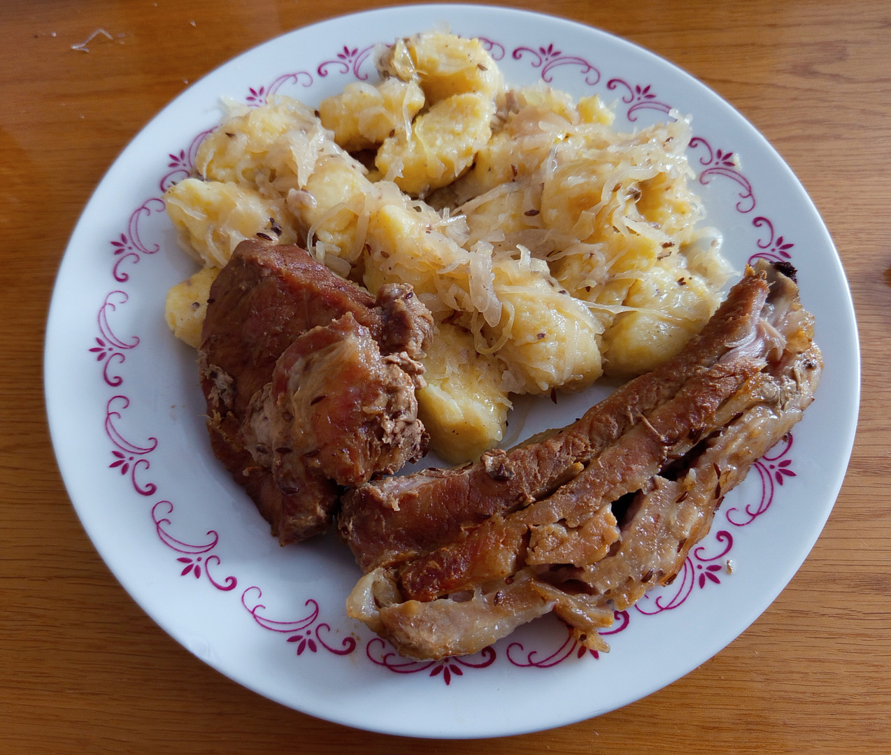 Pečené maso se "zelím s bobkama"