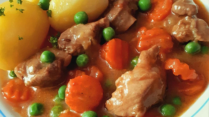 Toto výborné jídlo plné zeleniny, bylinek a vepřového masa se hodí i pro děti. Díky přípravě v tlakovém hrnci bude maso rychle měkké. Omáčku zahustíme moukou rozmíchanou v zakysané smetaně a podáváme s těstovinami.