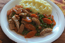 Domů - Recepty - Omáčka z vepřového masa s hráškem a mrkví