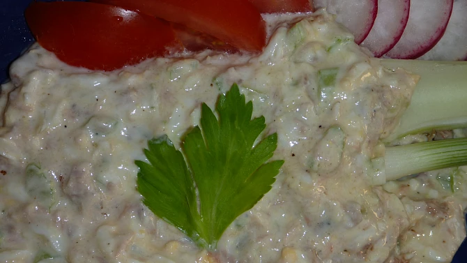 tvarohová pomazánka s tuňákem a řapíkatým celerem,