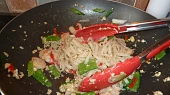 "Pad Thai" nebo opékané rýžové nudle s krevetami a zeleninou