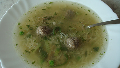 Problém je v tom, že jak maso a i nudle mezitím mohou zcchladnout a celkovou polévku na talíři ochladí, ale je to pak efektní na stole, kde je v miskách mnakrájené maso, potom nudle a další zelenina. Na ozdobení polévky samozřejmně petržel a nebo libeček.