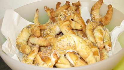 Krok 5: Těsto rozválíme a rádílkem ho rozdělíme na trojúhelníky, které klasicky stáčíme do tvaru rohlíčku.