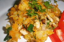 Kořeněné brambory s mrkví a kuř. masem