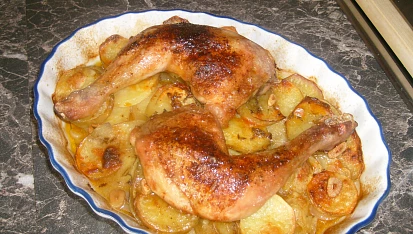 Akorát brambory prokládám cibulí a žádný tuk nepřidávám.Stehýnka pouští dost svojí šťávičky.Jinak recept je super páč se umývá jen jedno nádobí