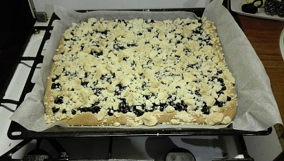 Krok 6: Po vykynutí urovnáme na těsto čerstvé borůvky a posypeme drobenkou.