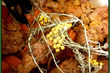 pak přisypeme kari,přidáme snítky kari,podlijeme vodou a dusíme