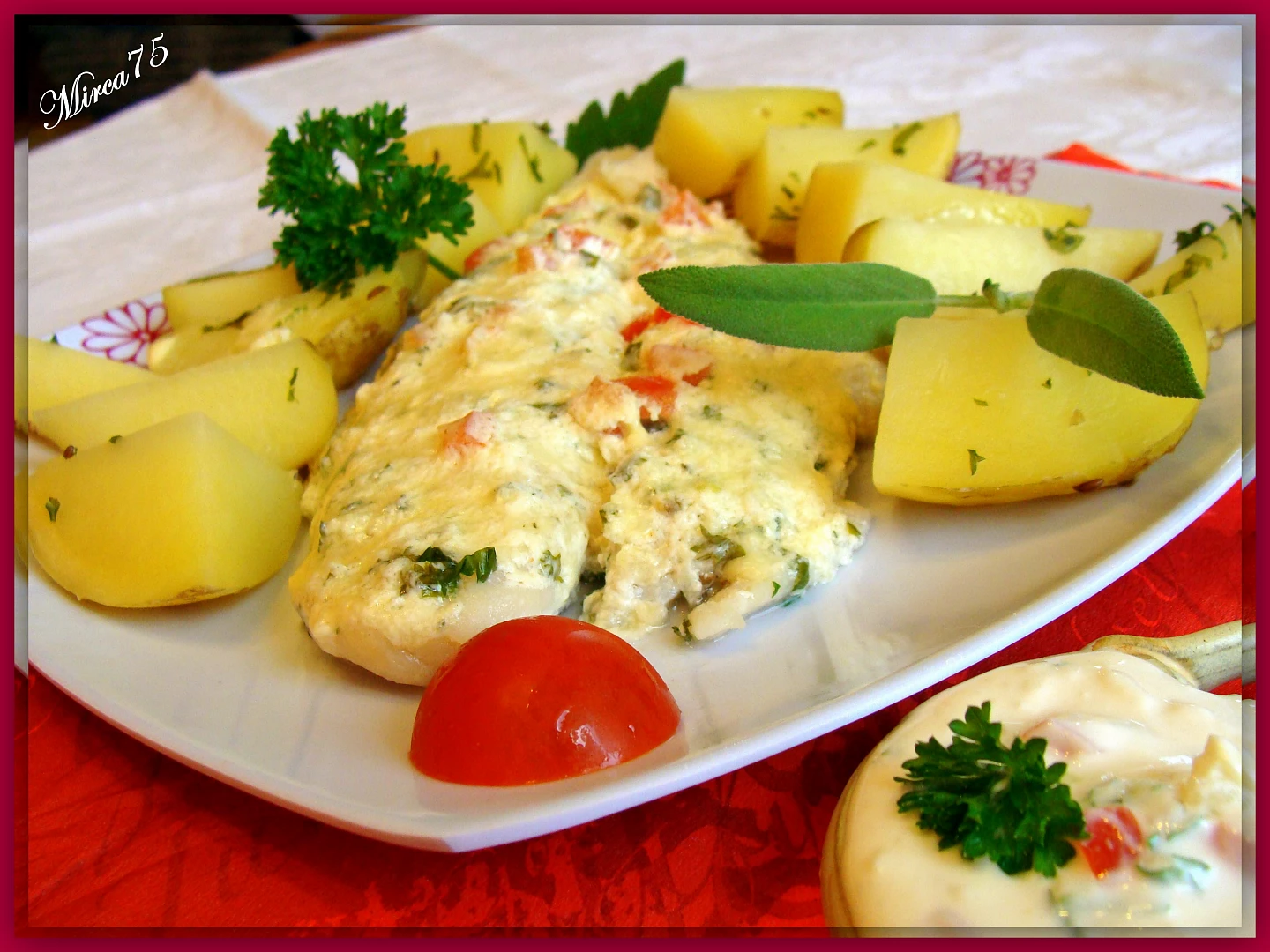Rybí filety pod bylinkovo - smetanovým kabátkem / parní hrnec