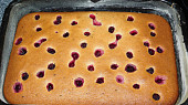 Vyšší plech na pečení vymažeme tukem a vysypeme moukou. Krok 2: V míse smícháme obě mouky, cukr, kávu a prášek do perníku a promícháme. Přidáme olej, mléko, vejce, rum, med a vše vyšleháme šlehačem do hladké hmoty. Krok 3: Nalijeme na vymazaný plech a poklademe ovocem. Vložíme do vyhřáté trouby a pečeme asi 30 minut. Krok 4: Podáváme posypané moučkovým cukrem nebo s čokoládovou polevou.