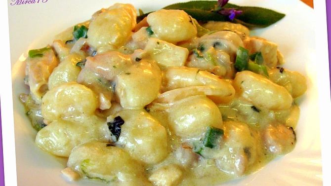 gnocchi s kuřecím masem,