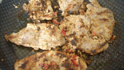 Krok 1: Řízky nařízneme a naklepeme tupou stranou nože. Jogurt smícháme s paprikou, posekanou kapií a kořením se solí. Směsí potřeme řízky a necháme v chladu přes noc uležet.