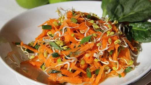 Krok 1: Jablko s mrkví oloupeme a nastrouháme. Jablko nastrouháme nahrubo, mrkev najemno. Zakápneme šťávou z 0,5 citronu a dáme do mixéru.