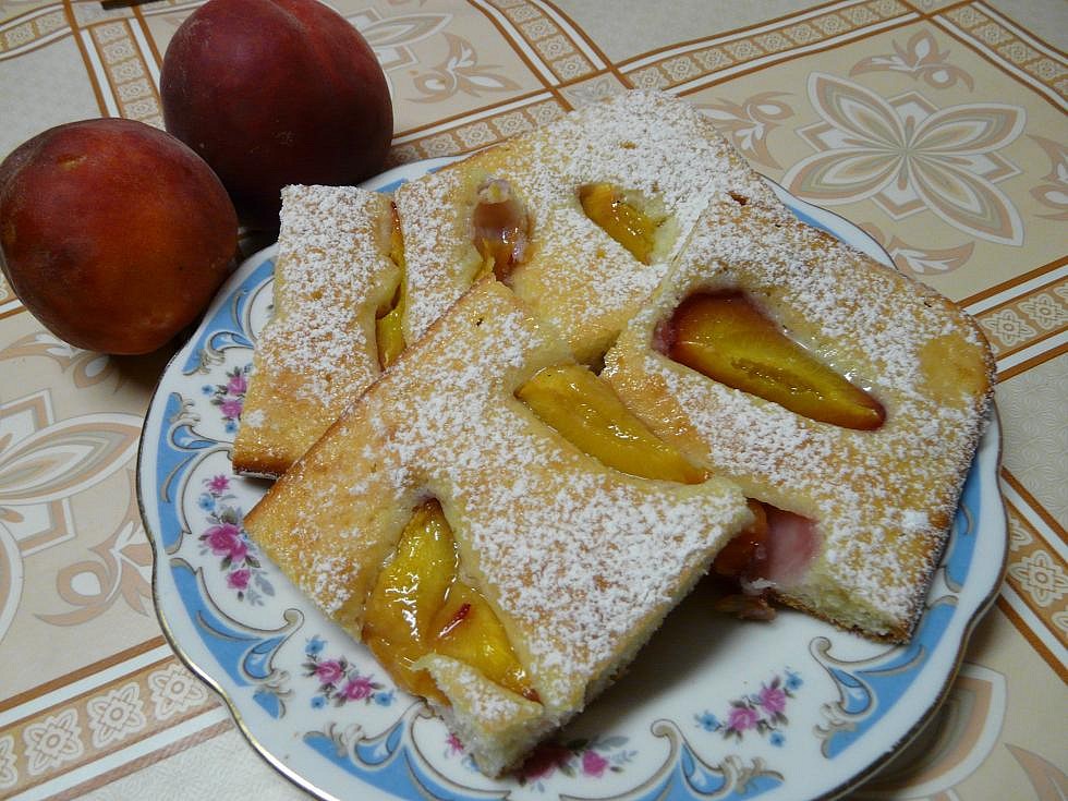 Koláč, na který stačí vymíchat suroviny v míse, vylít těsto na plech, poklást ovocem a upéct. Snadnější už to být nemůže, a přesto chutná skvěle a díky jogurtu je krásně vláčný. Připravte si ho s broskvemi či jiným ovocem dle sezóny.