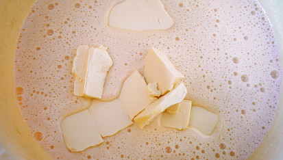 Krok 4: Na povrch dáme kúsočky tuku, posypeme 3 lyžicami cukru a dáme piecť do stredne vyhriatej rúry. Pečieme asi 25 – 30 minút (skontrolujeme dreveným špáradlom alebo ihlou).