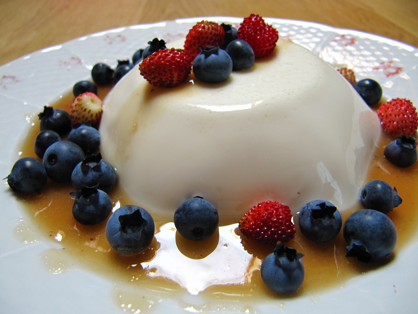 Krok 5: Vychladlou omáčkou poléváme ztuhlou, vychlazenou panna cottu. Dozdobíme čerstvým ovocem.