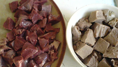 vepřové srdce a jazyk,