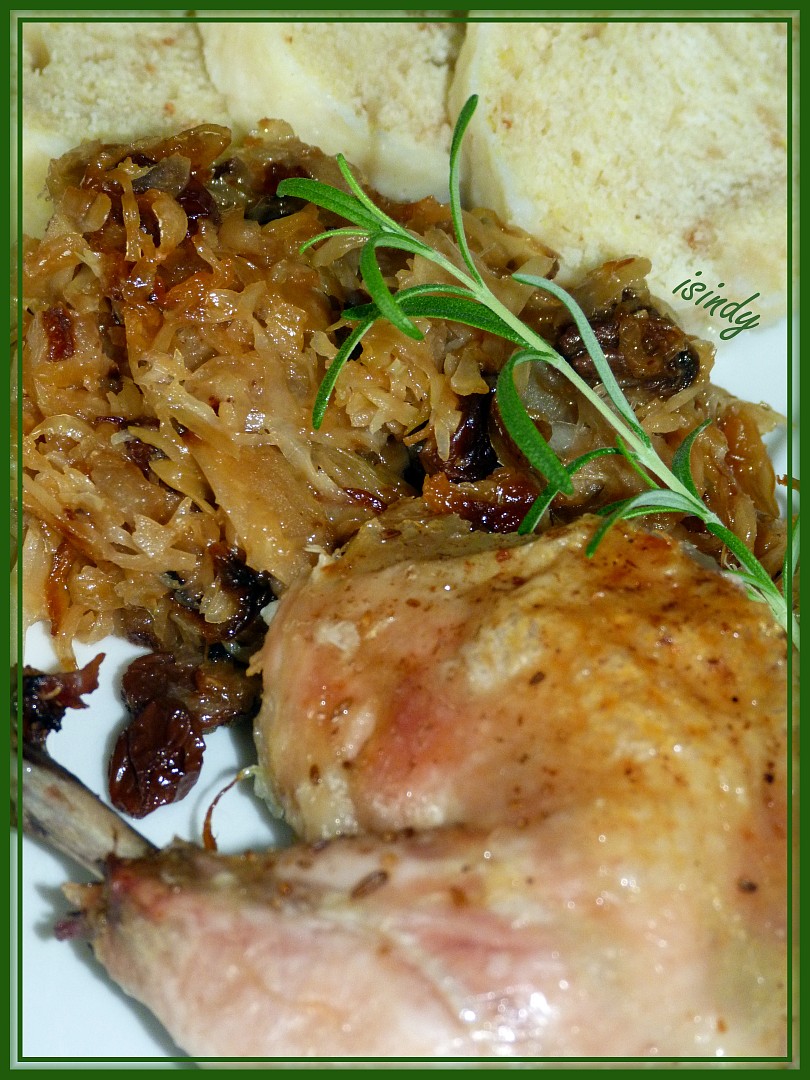 Kuře se zkaramelizovaným zelím a rozinkami