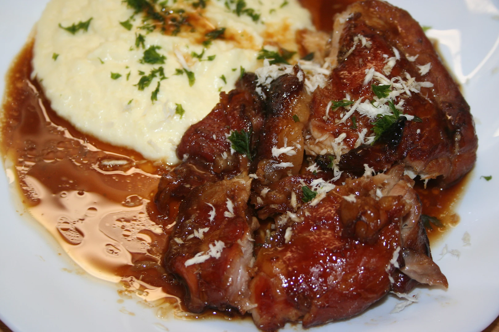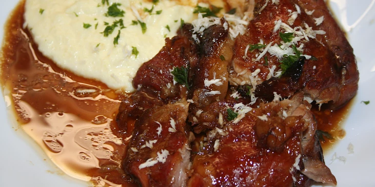 Domů - Recepty - Vepřový ocásek na meruňkové zavařenině s křenovou kaší