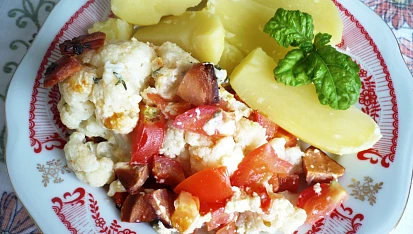 zapečený květák s bešamelovou omáčkou a sýrem,