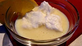 Krok 1: Dáme vařit půl litru mléka s vanilkovým cukrem. Ze dvou bílků uděláme tuhý sníh, lžící vykrajujeme nočky a házíme do vařicího mléka. Necháme přejít var a hned vyndáme na mísu.