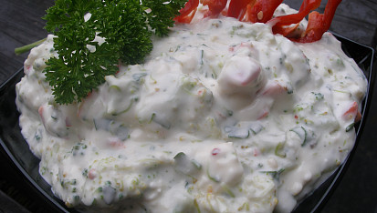 tuňákový salát se zakysanou smetanou,