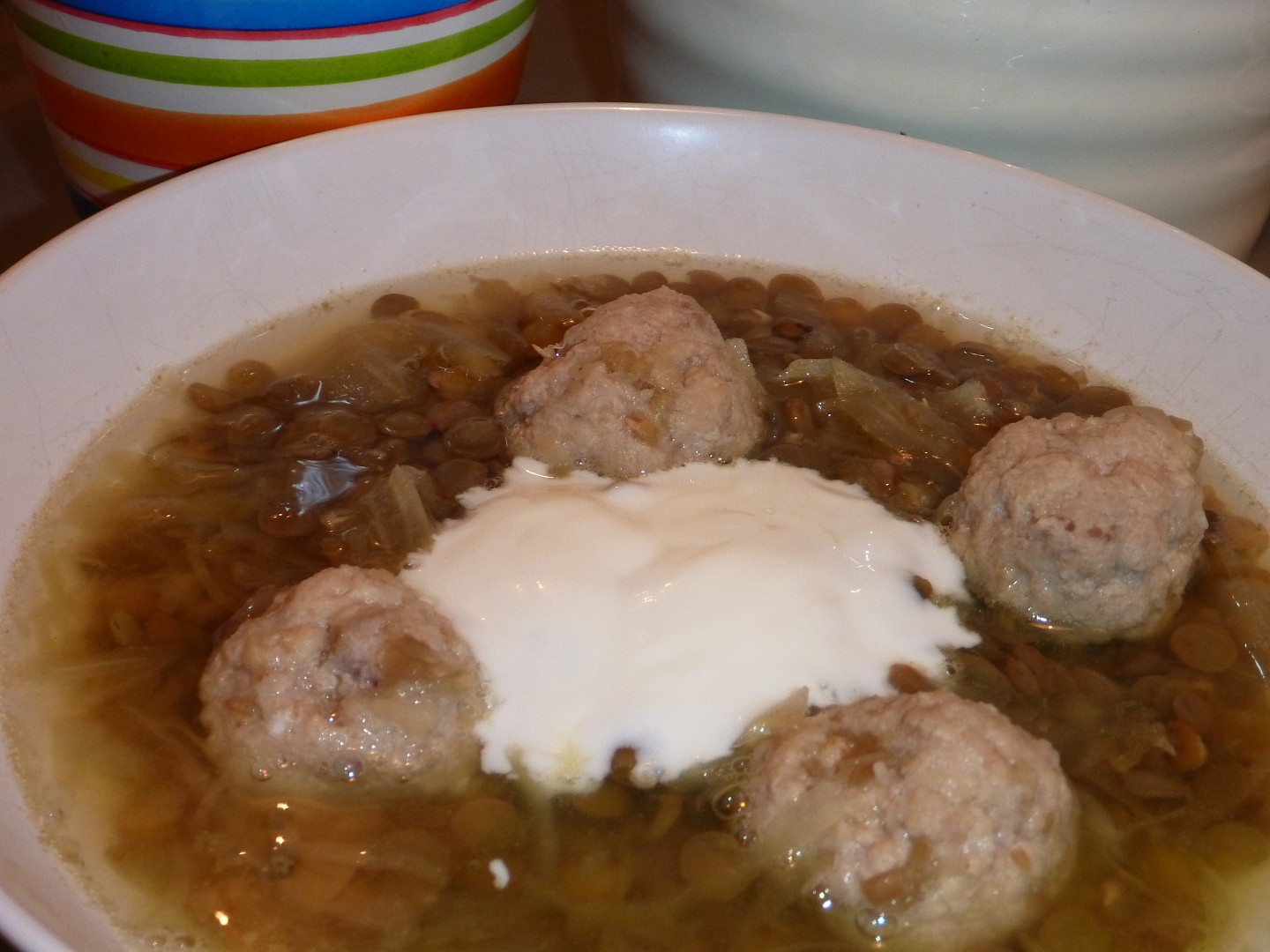 čočková polévka s masovými kuličkami,
