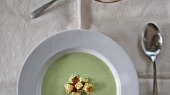 Krásná zelená barva a jemná konzistence, přesně to splňuje hráškový krém podle tohoto receptu. Ideální je hrášek mražený, ale použít můžete i čerstvý. Díky smetaně je polévka lahodná a hebká, doplnit ji můžete křupavými krutonky dle vlastní chuti.
