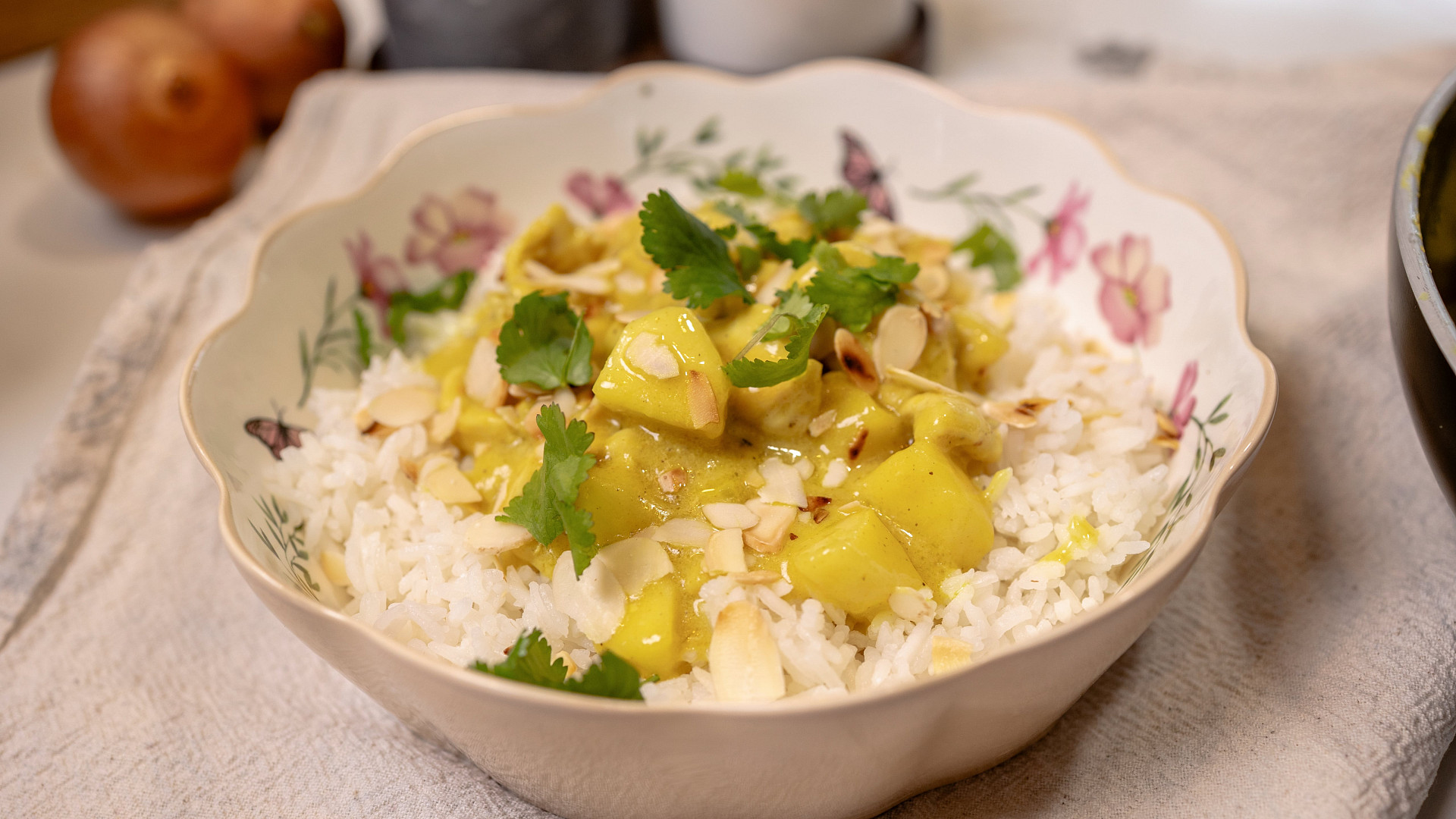 Kuřecí prsíčka s kokosovým mlékem a kari (Kuřecí na kari)