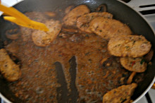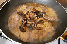 přidáme podušené žampiony,1/2marinády a promícháme