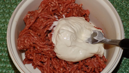 Krok 1: Mäso osolíme a zmiešame so smotanou.