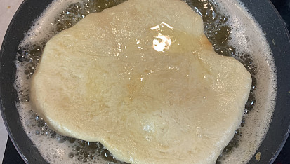 Krok 6: Hotové langoše odkládáme na ubrousek, abychom odstranili přebytečný tuk.