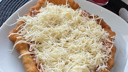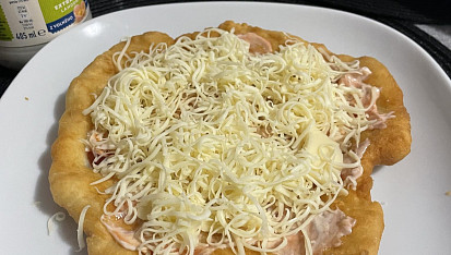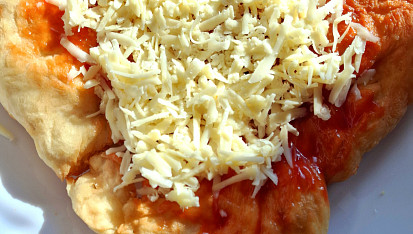 Krok 7: Kečup smícháme s utřeným česnekem, potřeme langoše a posypeme sýrem.