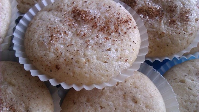 Krok 2: Cesto nalejeme do košíčkov alebo do formy na muffiny a posypeme ich kryštálovým cukrom a škoricou.